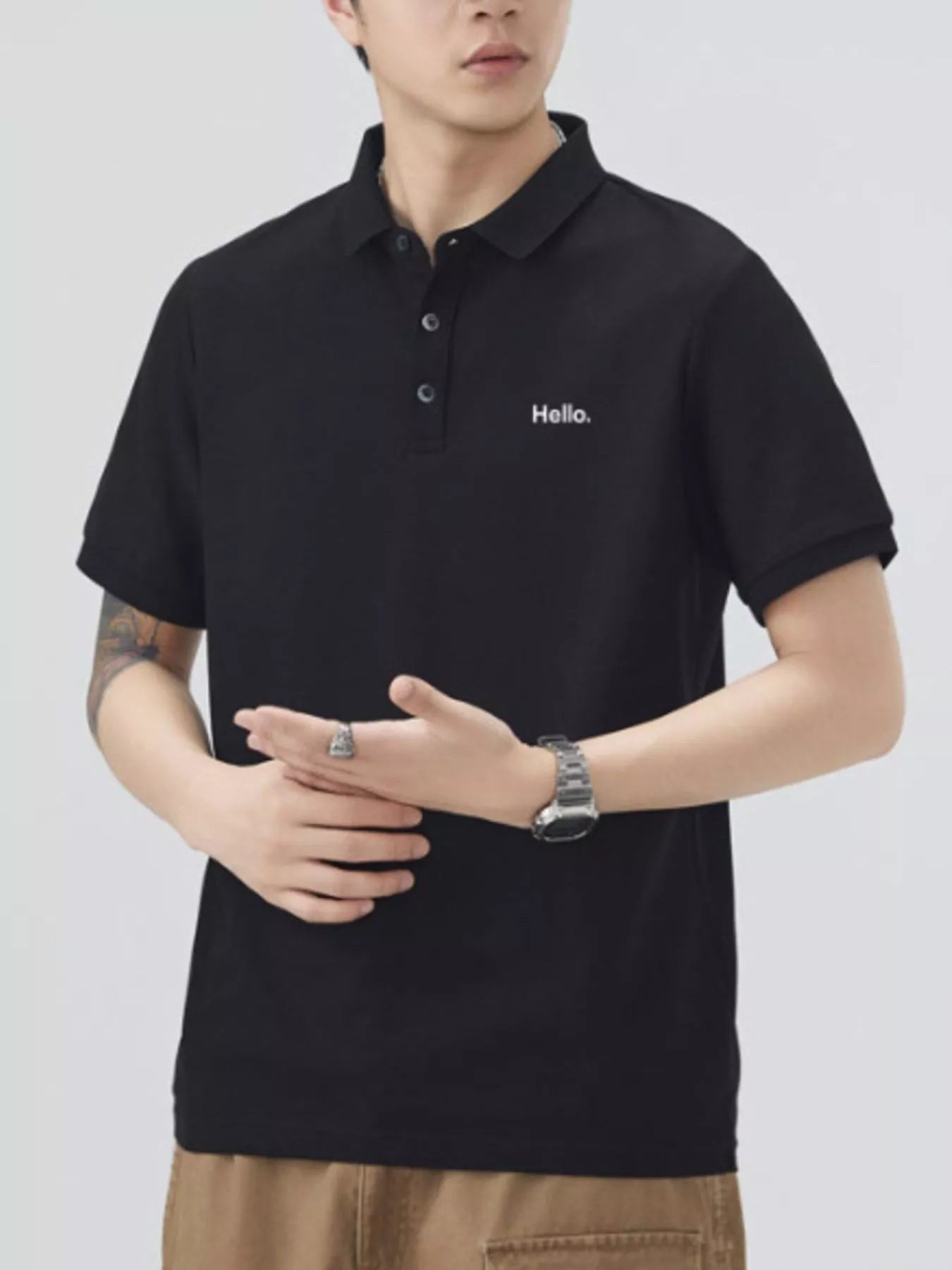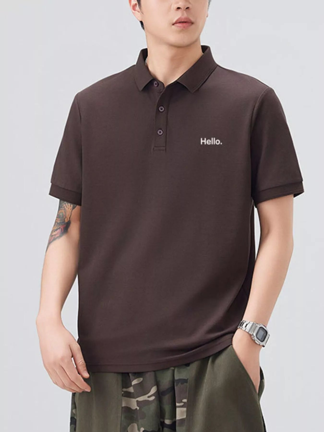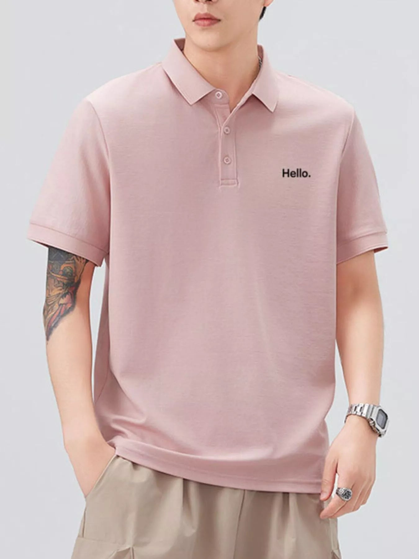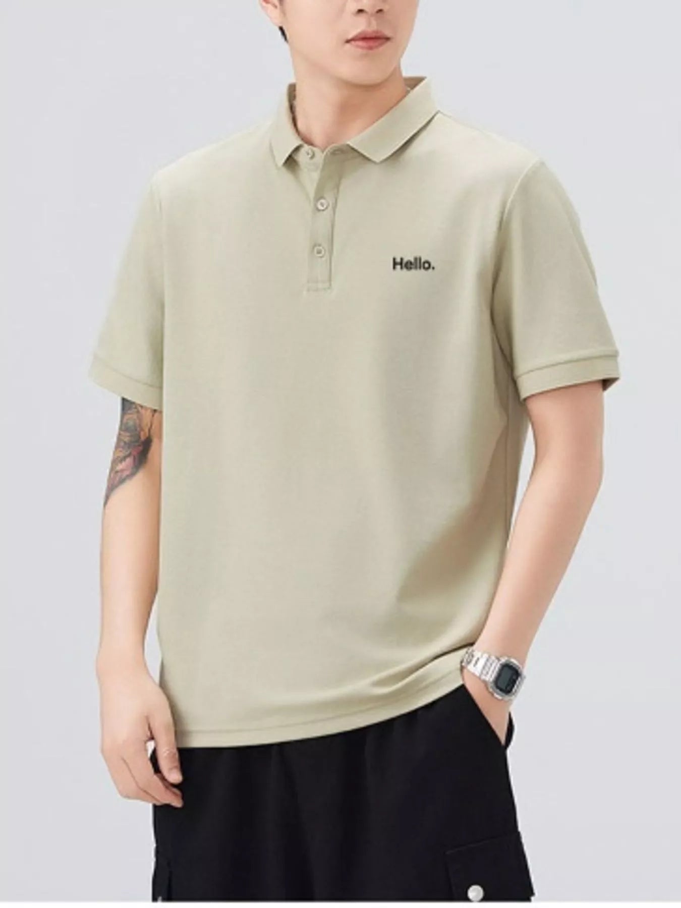This men's short sleeve polo combines classic button detail with a slightly stretchy fabric blend of 71.5% cotton and 28.5% polyester for comfort and ease of movement. Its breathable material keeps you cool throughout the day, while easy machine wash care adds convenience. Perfect for casual or smart-casual occasions, this basic yet refined polo offers reliable comfort and style.