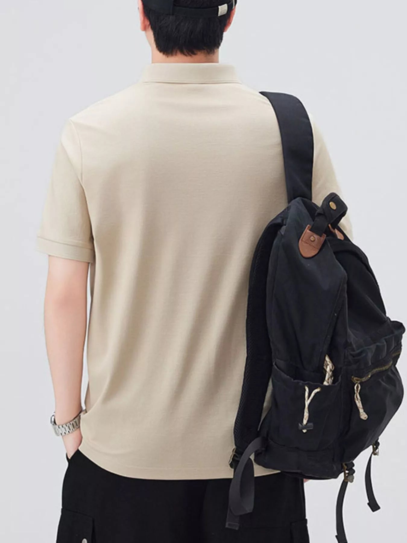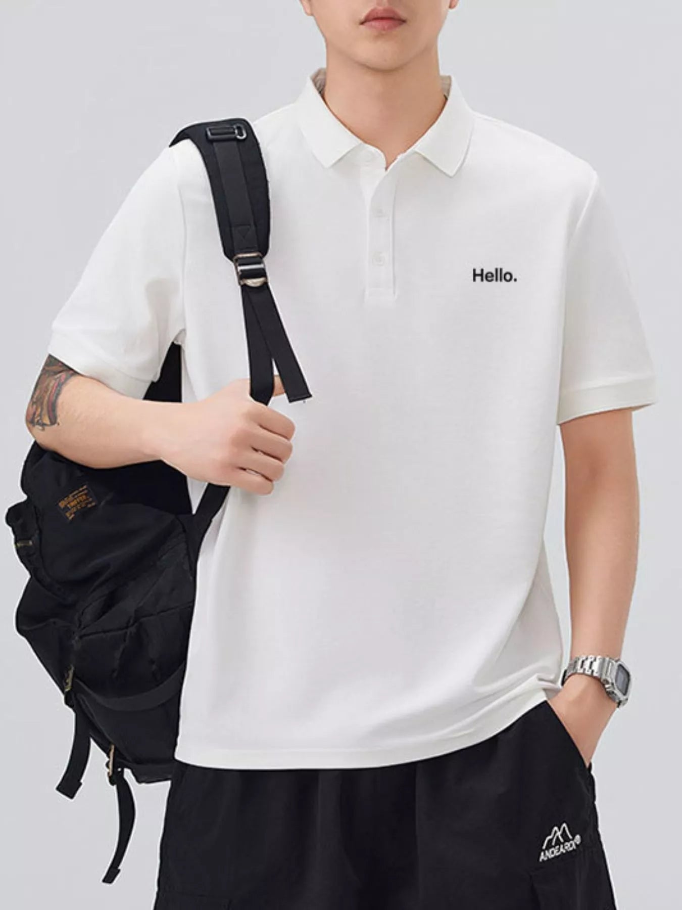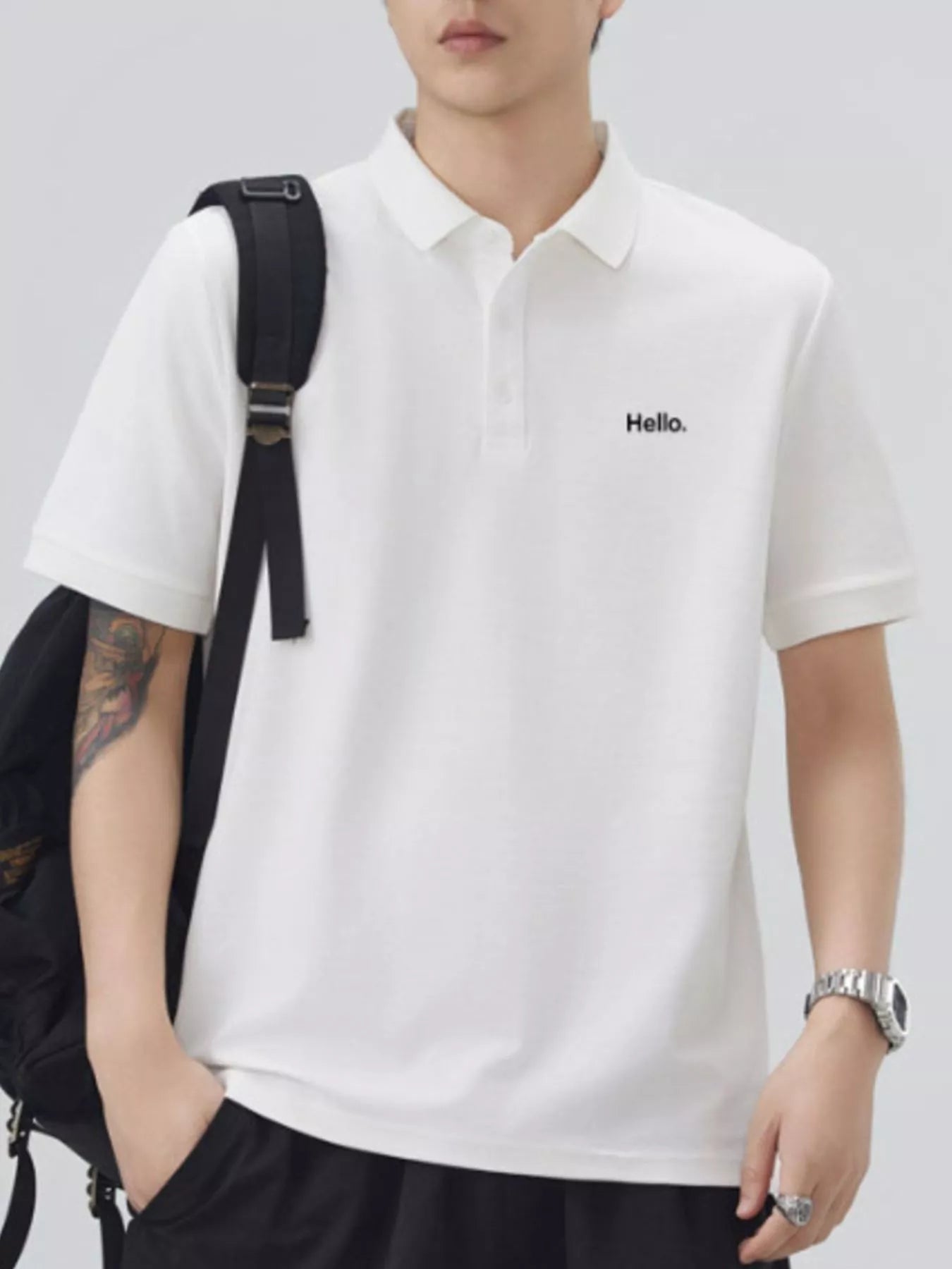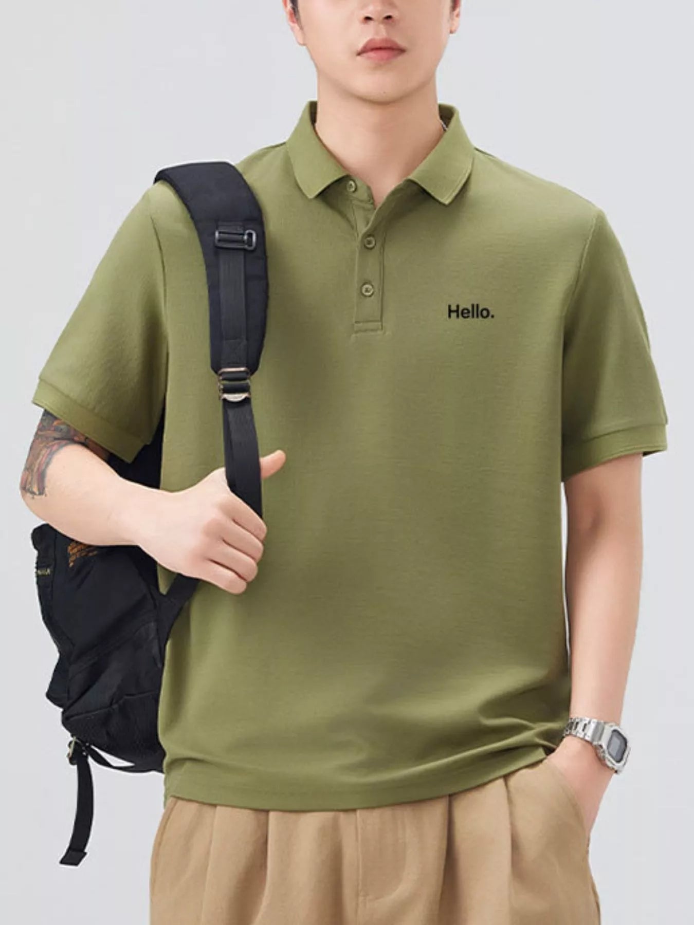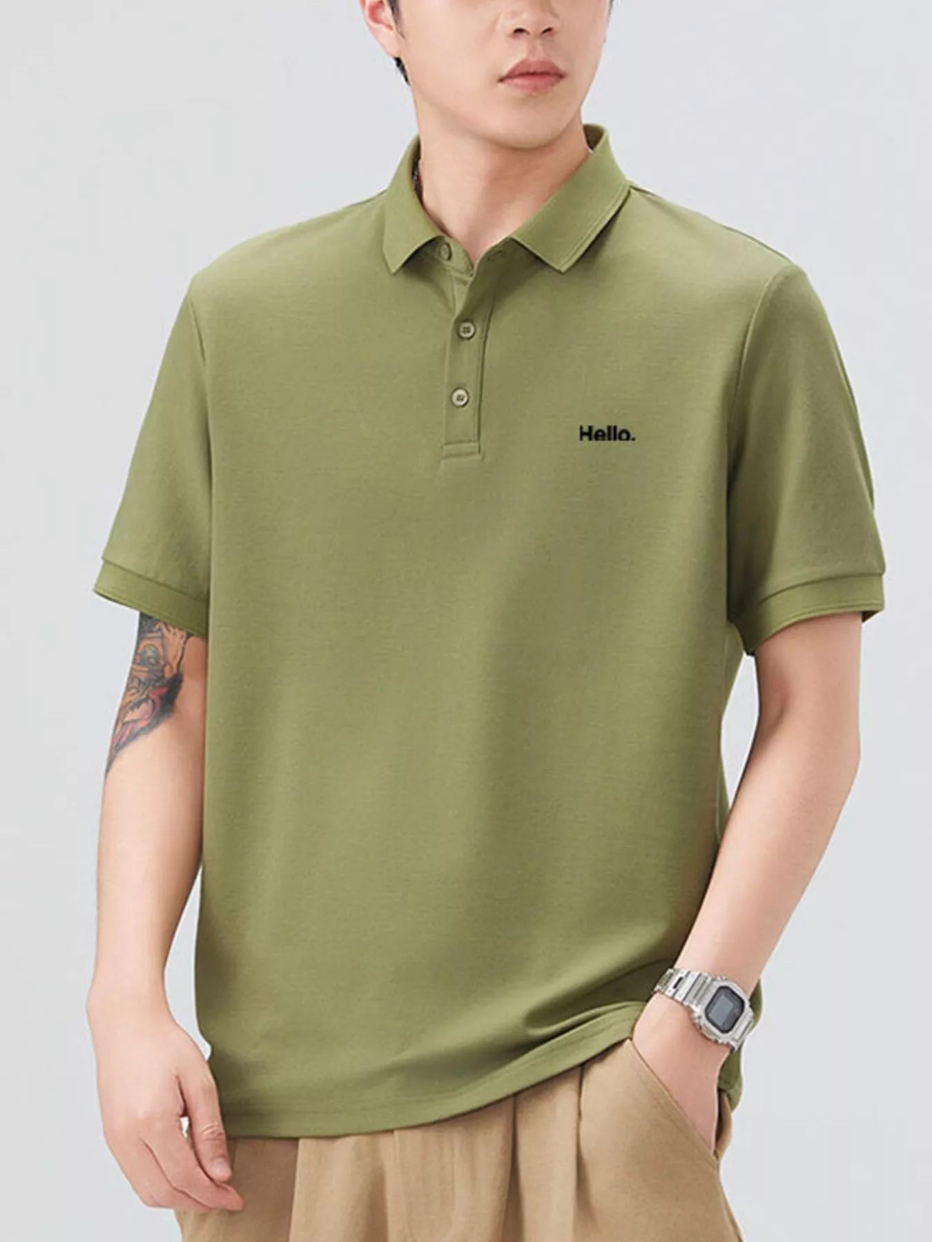 This men's short sleeve polo combines classic button detail with a slightly stretchy fabric blend of 71.5% cotton and 28.5% polyester for comfort and ease of movement. Its breathable material keeps you cool throughout the day, while easy machine wash care adds convenience. Perfect for casual or smart-casual occasions, this basic yet refined polo offers reliable comfort and style.