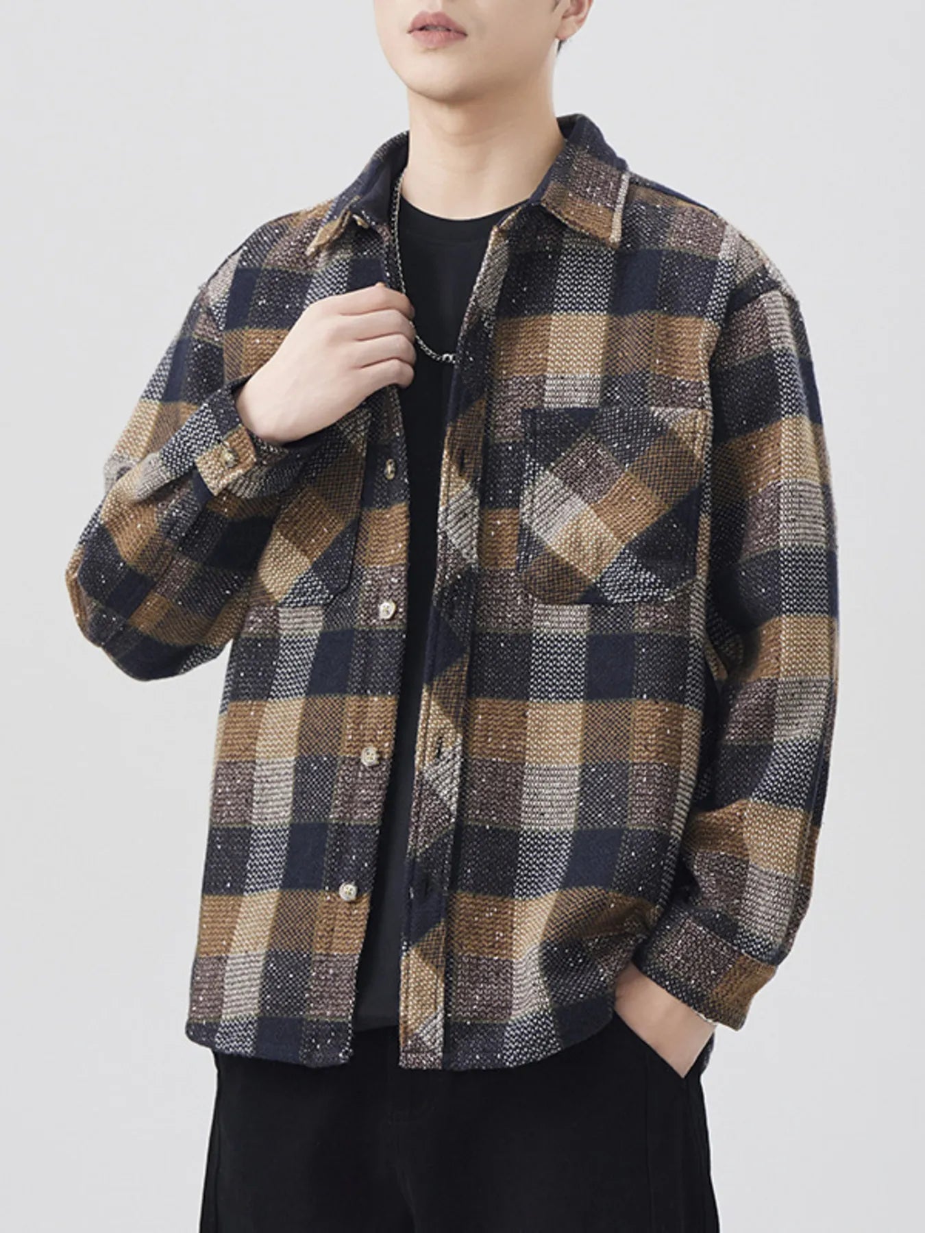 Men's Plaid Button Up Long Sleeve Shirt